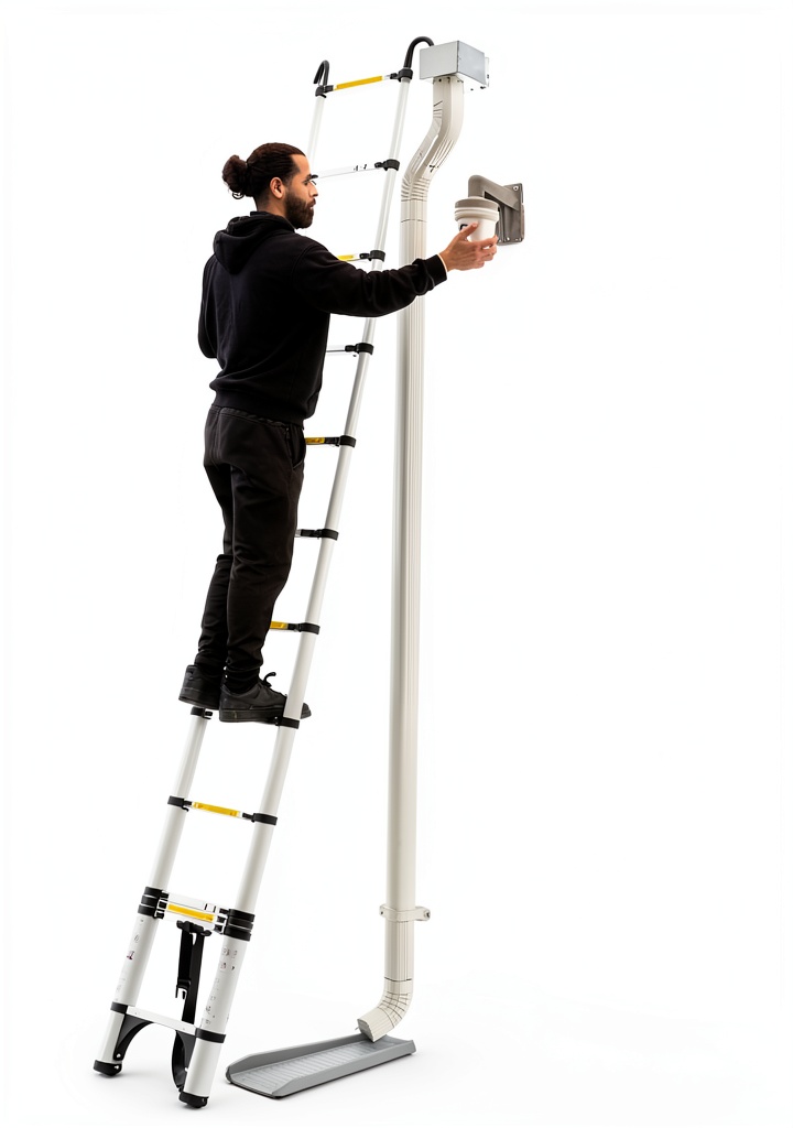 This ladder is designed for a wide range of environments, from residential homes to recreational vehicles (RVs) and outdoor settings. It is ideal for tasks such as changing light bulbs, accessing attics, cleaning gutters, or performing maintenance on travel trailers. The target audience includes homeowners, DIY enthusiasts, RV owners, and professionals who need a secure, adjustable tool for reaching elevated areas safely and efficiently.