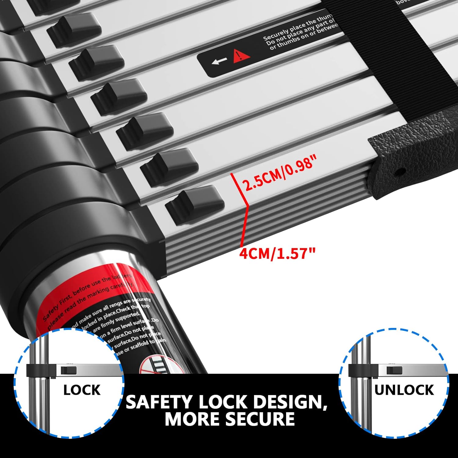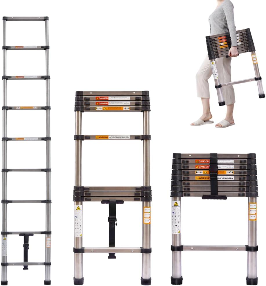 The Qimu stainless steel extension ladder offers superior durability and safety with a 330-pound load capacity and anti-slip features. Its lightweight, telescopic design makes it easy to transport and store, perfect for household tasks like changing bulbs, cleaning windows, or garden work. Built to last with high-quality materials and independent locking mechanisms for secure use.