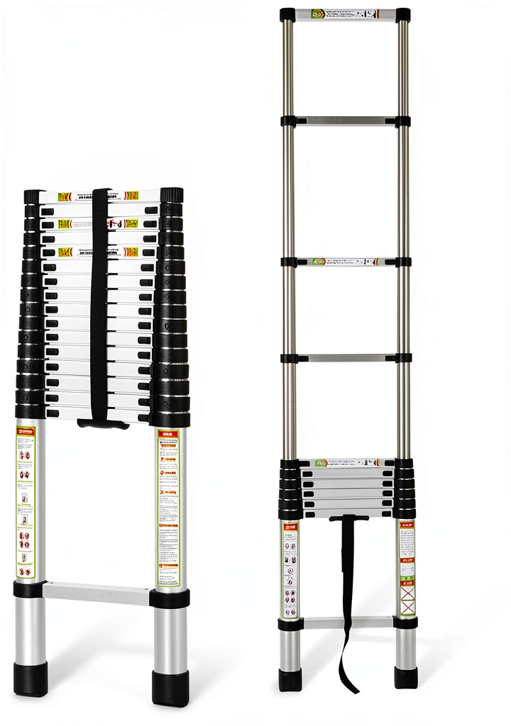This extendable ladder is ideal for various environments, including household cleaning, organizing high objects, and professional projects in construction or maintenance. It is also well-suited for outdoor activities such as camping, where portability and compact storage are essential. Target audiences include homeowners, DIY enthusiasts, and workers who need a reliable, easy-to-transport ladder for tasks at different heights. Its lightweight design and handrail facilitate effortless carrying and storage in tight spaces like under beds or in corners.