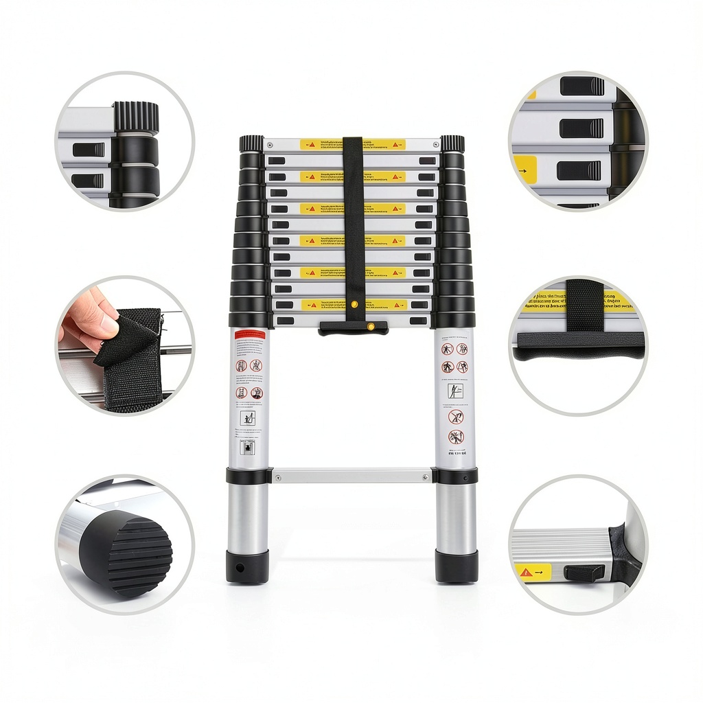 This ladder is designed for a wide range of applications, including home maintenance, construction work, and DIY projects. It’s ideal for painting walls, cleaning gutters, accessing rooftops, or performing electrical repairs. Target users include homeowners, contractors, and handymen who need a portable and secure solution for reaching elevated areas. Its telescoping mechanism allows for adjustable heights, making it suitable for both indoor spaces like living rooms and outdoor environments such as gardens or job sites.